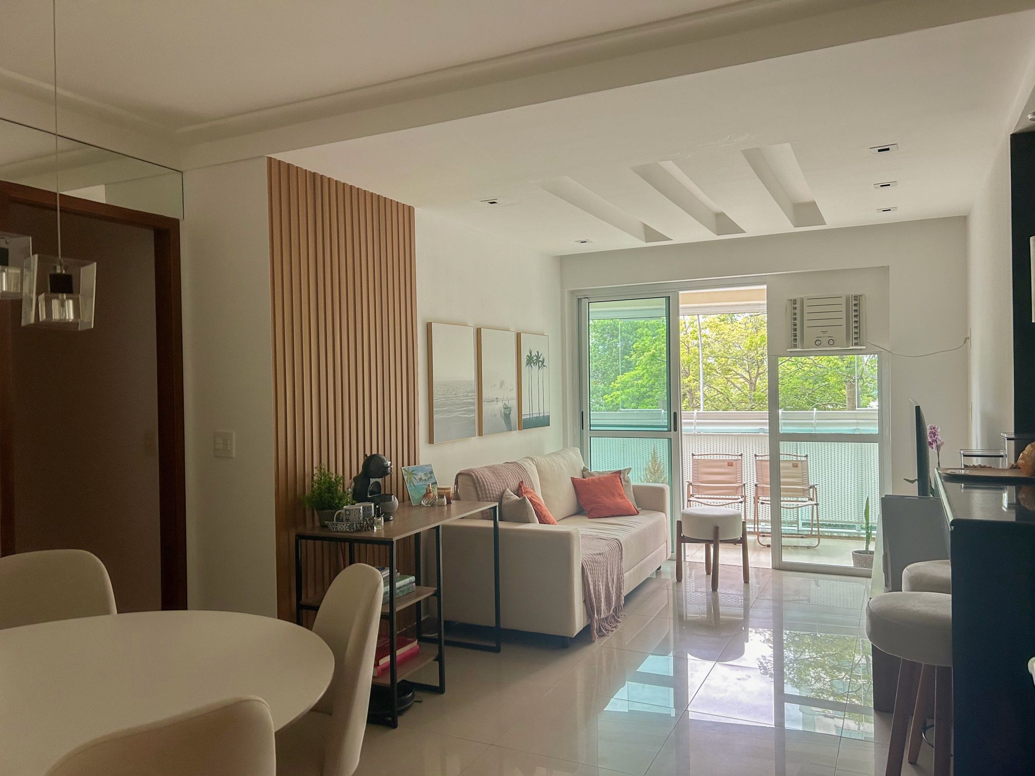 Nossa equipe transformou um apartamento alugado em um espaço único, respeitando suas restrições. Utilizamos um painel ripado em PVC para adicionar textura ao ambiente sem alterações permanentes. A escolha de mobiliário solto permitiu um layout eficiente, com peças selecionadas para otimizar o espaço sem comprometer o estilo. Priorizamos as necessidades dos clientes para criar um ambiente acolhedor e funcional, demonstrando nossa capacidade de projetar espaços distintos dentro de limitações estruturais.
