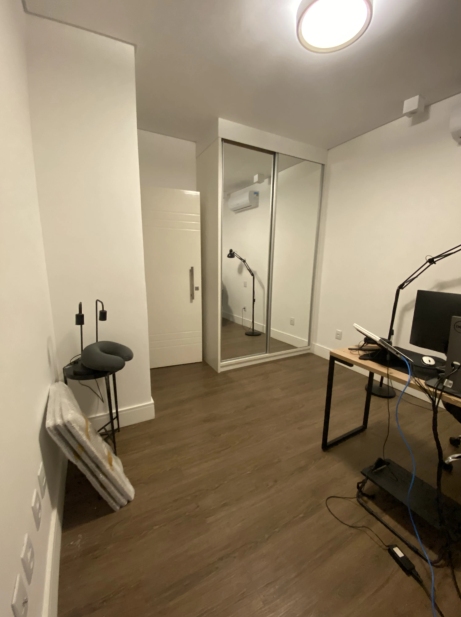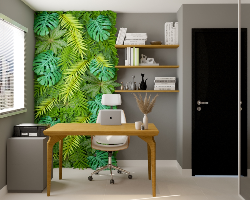 Atendendo às preferências da cliente, criamos um ambiente único que combina funcionalidade e estilo. Uma espaçosa mesa de trabalho foi incorporada, e a parede de fundo foi transformada em um cenário instagramável, perfeito para vídeos e videochamadas profissionais. O resultado é um espaço personalizado que reflete a personalidade da cliente, proporcionando um local inspirador e eficiente para suas atividades profissionais.